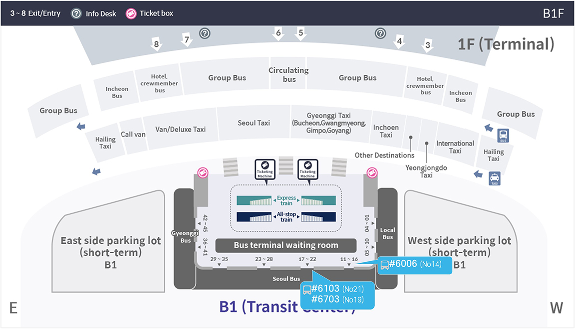 | Departure | Airport Railroad Express (AREX) > Line 9 | Airport Railroad Express (AREX) > Line 2 |